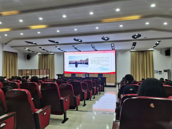 王冬霞以自己人生经历和“两个乞丐”的故事导入课堂,从“修身立志、敏事慎言、博学笃行”三个方面为同学们讲解了如何做一个有理想、敢担当、能吃苦、肯奋斗的新时代好青年。她讲到,在“修身立志”方面,要做到“谦逊、感恩、责任、立志”,坚定理想信念和养成良好的品德修养,才能真正担当起时代赋予的责任;在“敏事慎言”方面,要保持“主动、执着、细心、慎言”的态度,以积极的心态应对生活中的各种挑战和困难;在“博学笃行”方面,要注重“勤学、善思、明辨、笃行”,不断学习、思考和辨别,学好知识,练好本领,为干一番事业、有一番作为打好基础。