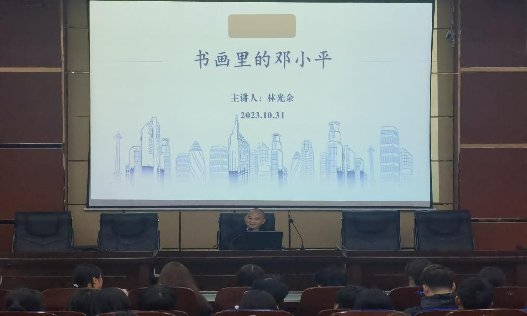 10月31日晚七点,九游体育官网名师工作室负责人林光余在滨江校区明德楼希贤厅作《书画里的邓小平》专题讲座。讲座由九游体育官网院长石乾福主持,九游体育官网部分教师、艺术学院部分教师及全体大一新生共计200余人参加。