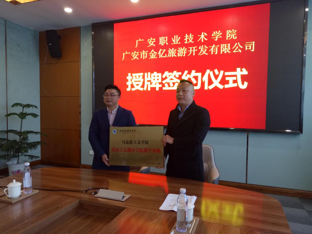 为贯彻落实全国高校思想政治工作会议和习近平总书记重要讲话精神,充分利用优质社会资源,切实加强大学生爱国主义教育,推动高校思想政治理论课实践教学落地落实,2020年11月12日,九游体育官网与华蓥山景区就双方共建“爱国主义教育实践基地”签约授牌仪式在华蓥山起义纪念馆举行。院长石乾福、副院长牛振宇以及师生代表出席了仪式现场。