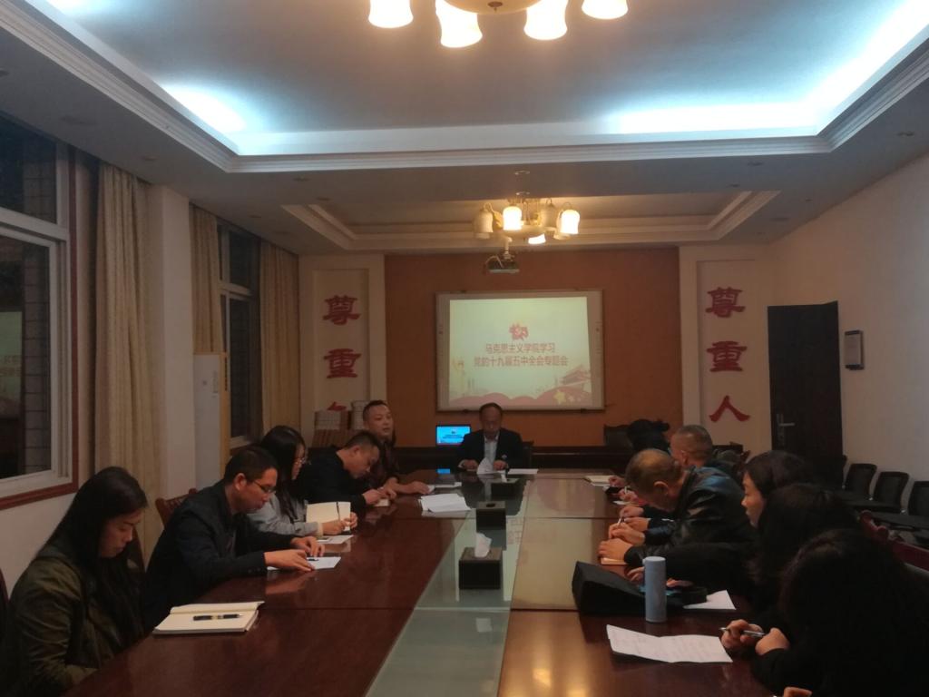 11月17日下午六点,学校党委委员杨建华组织九游体育官网全体教师在春晖楼二楼会议室集中学习党的十九届五中全会精神。