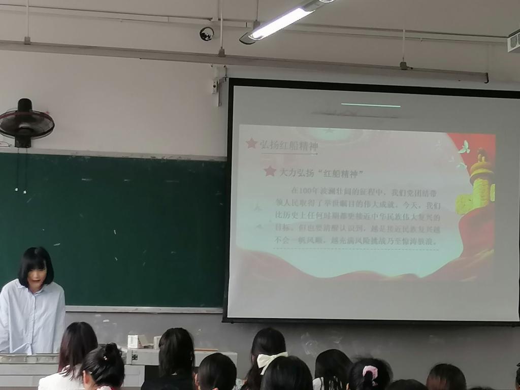 首先,学生宣讲团成员代灵巧为同学们宣讲了开天辟地、敢为人先的《红船精神》,再现了有志青年们为了民族复兴、人民幸福坚定理想信念、百折不挠的奋斗精神。接着,戴香雨同学结合新冠疫情防控,为同学们作了《同舟共济,青春谐进,共同抗疫》主题宣讲,让同学们深刻明白了“中国共产党为什么能”、“中国特色社会主义为什么好”、“马克思主义为什么行”,再次印证了只有中国共产党才能救中国,社会主义制度的优越性。最后,全体同学起立,一起朗诵了《少年中国说》。
